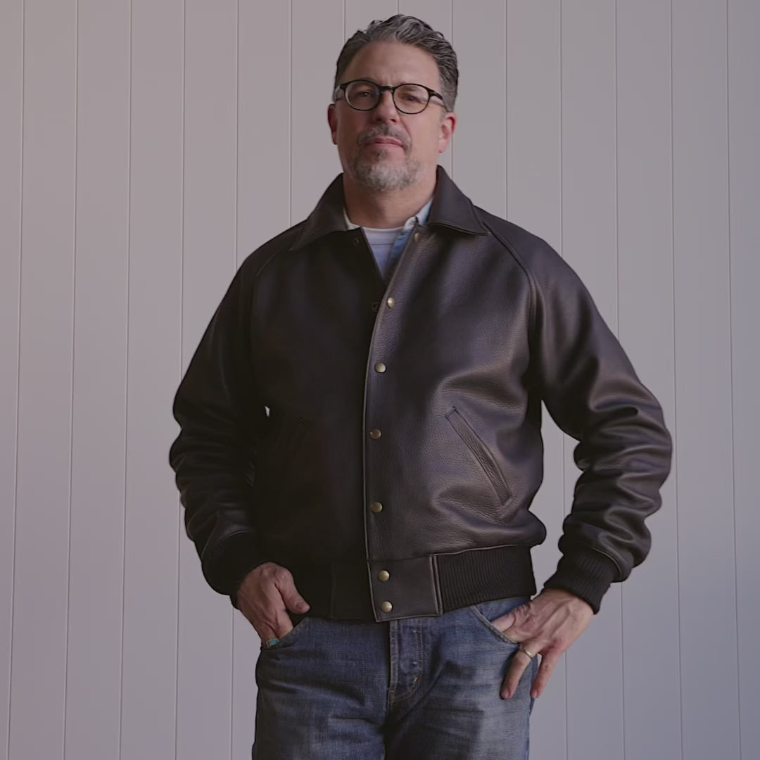 The Vintage Snap Raglan No.415 is new for Holiday 2025. Built from our original No.410 Raglan pattern with seven snaps and overlapping leather replacing the zipper for a unique and vintage look.